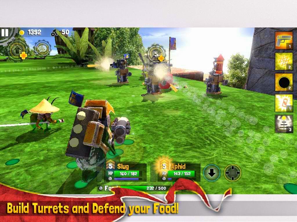 - Scavenge for food, then defend your Food Stash with turrets and upgrades